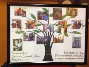 “We know that there will be lots of politics in the back and forth over immigration reform and what’s in the bill, but we, as women and as mothers, want Senator Collins to have this photo to remind her of what really matters in this debate — keeping families together,” said Mia Ntahobari of Portland.