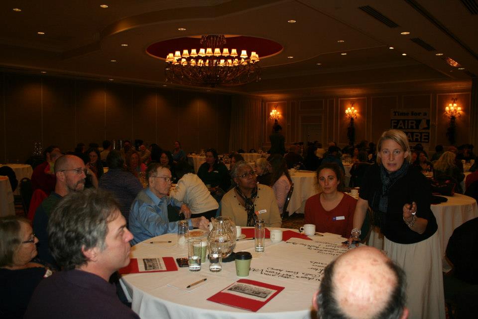 On December 1st and 2nd, 120 members of our affiliate Maine People’s Alliance (MPA) came together from across the state for their Annual Winter Retreat. The event created space for staff and leaders to reflect on their work over the past six months and to develop plans for 2013. The group was trained on a number of skills ranging from meeting facilitation to personal visits to direct action. They also had an opportunity to celebrate the significant victories MPA garnered with their impressive civic engagement efforts. And in addition to reflecting, planning, training and celebrating, members took action on the federal budget fight. It was a very busy weekend for MPA!