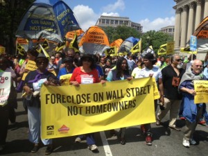 On Monday, Alliance members from Colorado Progressive Coalition and Washington CAN! joined over 500 homeowners for a day of action targeting the Department of Justice for its continued failure to prosecute Wall Street banks and their executives for major financial crimes. In March, U.S. Attorney General Eric Holder told the Senate Judiciary Committee the banks were too big to jail.