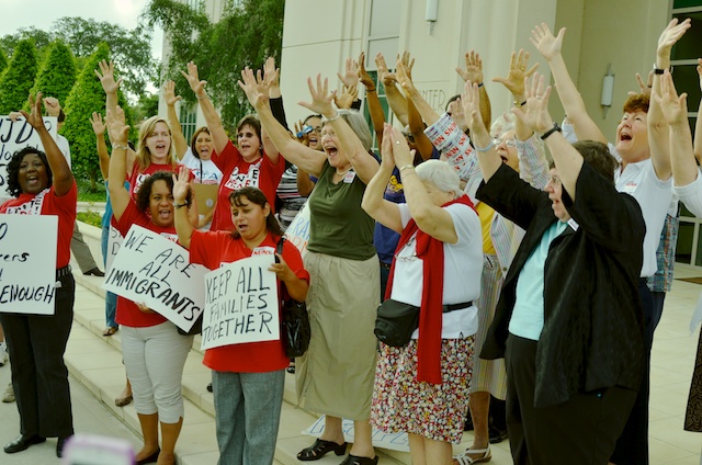 prayer vigil at Mica’s office on Thursday, and an action at Rep. Daniel Webster’s office on Friday. On Monday, immigration reform allies returned to Webster’s office for a delegation visit with Nuns on the Bus.