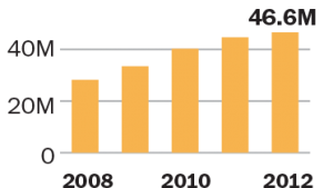 A standstill politically but when we see data below— we see that participation in the SNAP program has nearly doubled since 2008; grocery bills have increased; and with that rise, individual benefits only increased slightly. It is no surprise that with the drop in incomes, the high rates of unemployment and the debt burden of millions of Americans since the crash that same year that the country would see such an increase in participation. With individual benefits increasing so slowly, and food costs rising, clearly America’s working families are not seeing the gains of the so-named economic recovery.