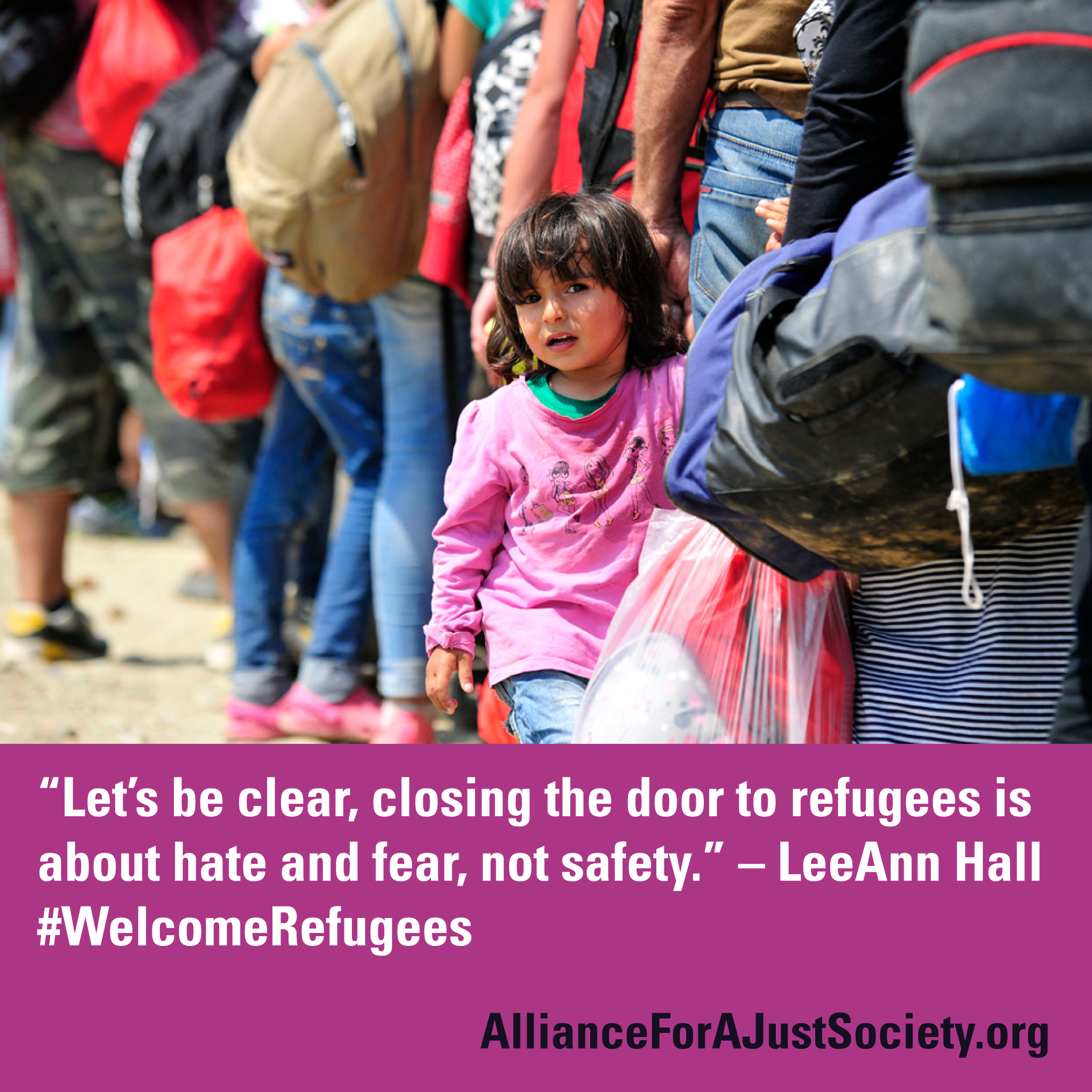 We reject racism, xenophobia, and religious intolerance. We join with all voices of conscience that mourn victims of violence around the world and call for a nationwide welcome of refugees.