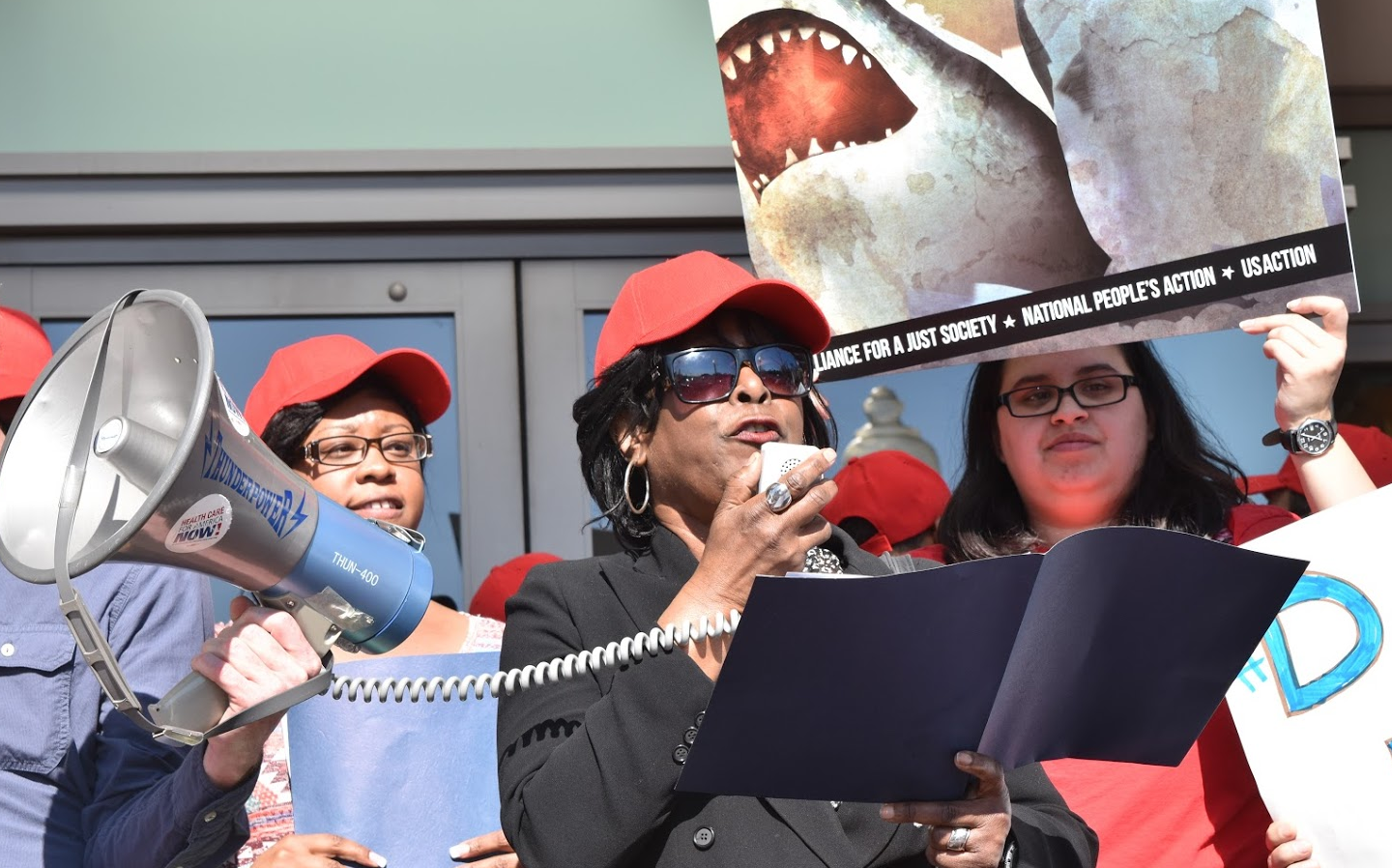 While leaders waved signs reading “Sharknado 4, starring Debbie Wasserman Schultz, produced and directed by the payday loan industry,” speakers from throughout the country testified to the devastation they and their communities have suffered.