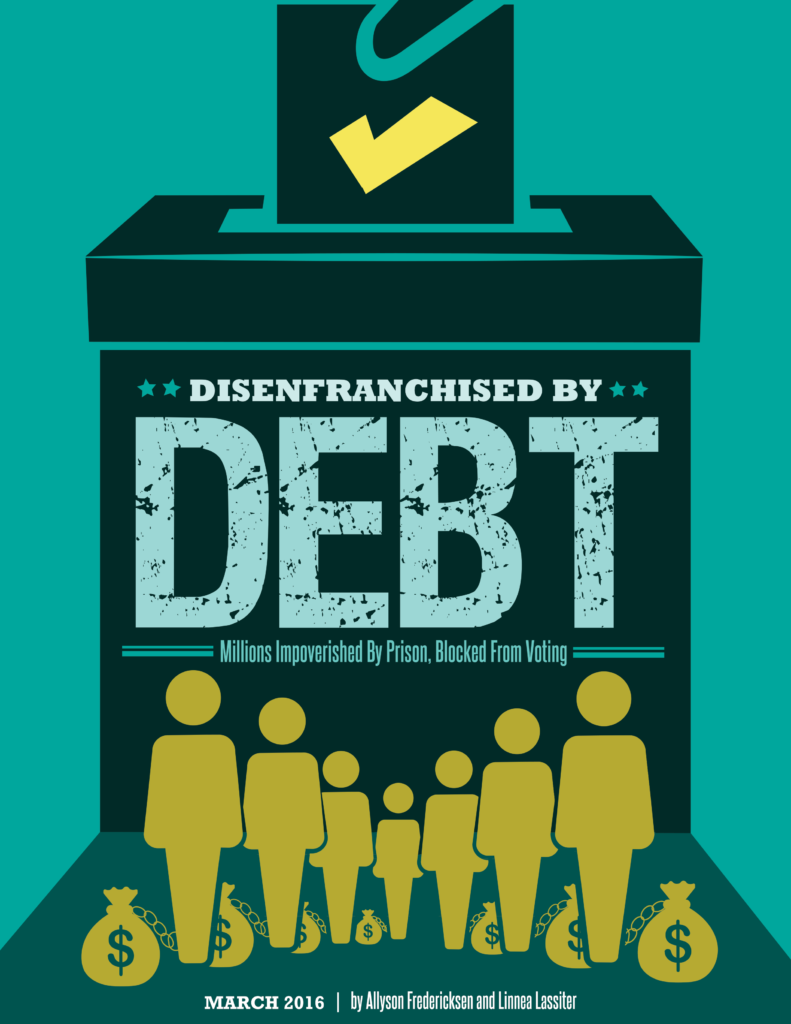Read Disenfranchised by Debt, a report documenting how millions of people empoverished by prison are then blocked from voting.